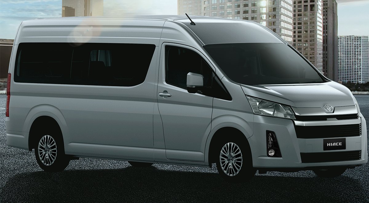 Hiace 12 Pasajeros, capacidad de carga – 1,145 kg, capacidad del tanque de combustible – 70 litros
